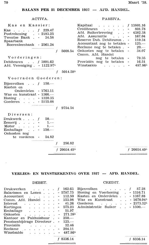 De winst van 1936 werd gevoegd bij het kapitaal. De reserve op dubieuse posten behoefde niet verhoogd te worden. De voorraad goederen werd tegen inkoopsprijs opgenomen, terwijl een kleine hoeveelheid minder courante goederen pro-memorie werd opgenomen.